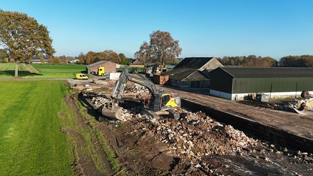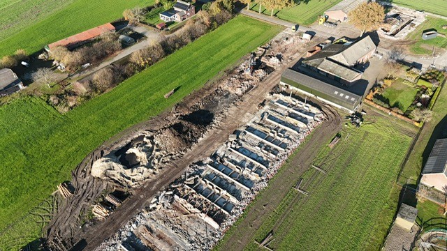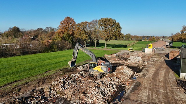 6000 ton puin gaan we ter plaatse breken en zal hergebruikt worden bij nieuwbouw projecten in de regio.
